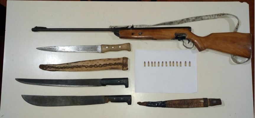 DOS DE MAYO. La Policía acudió ayer al inmueble en Paraje El Doradito a las 16:30 hs y secuestró un rifle de 22 mm, 13 municiones calibre 22, 2 cuchillos y 1 machete.