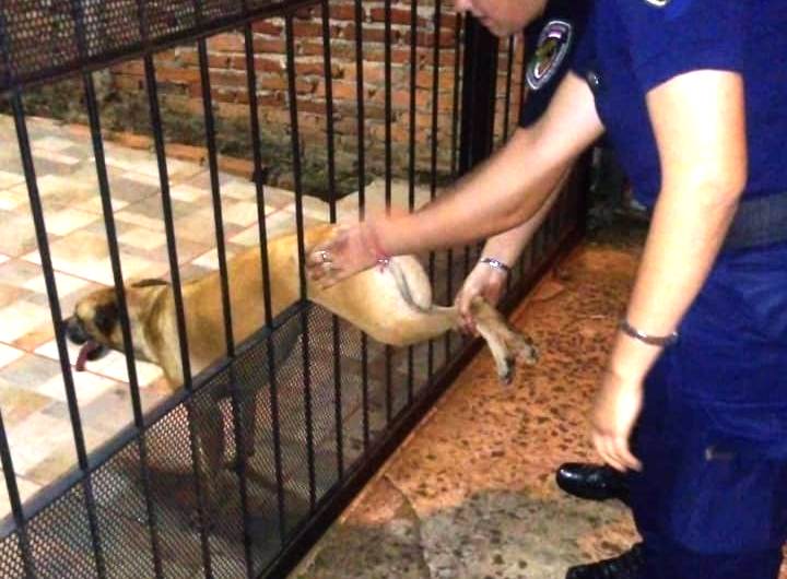 POSADAS. Esta madrugada, en barrio Club Vial, efectivos de la comisaría 9ª acudieron al llamado de un hombre que dio cuenta de que el perro de su vecino quedó atascado en el portón de su casa.