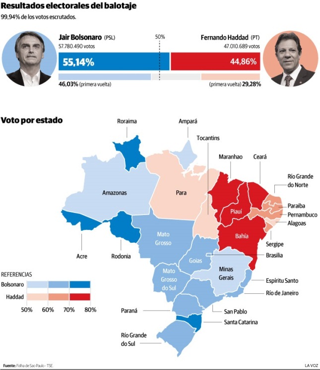 La investidura de Bolsonaro será el 1° de enero de 2019. Más de 147 millones de brasileños estaban llamados a las urnas en la elección más grande de América latina.
