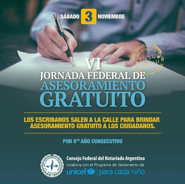 OBERA. Se realizará la 6ta Edición de la Jornada Federal de Asesoramiento Gratuito organizada por el Consejo Federal del Notariado Argentino, donde los escribanos salen a la calle para asesorar a la gente sin cargo de 9:00 Hs a 13:00 Hs en plazas públicas.