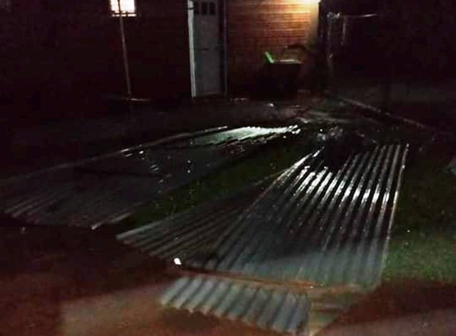 Barrio San José familia de Adrian B (27) voladura de 4 chapas sector cocina, no siendo evacuados razón no afectar sector habitaciones.