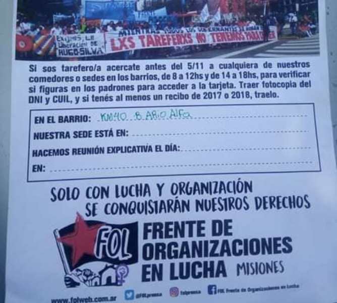 ALEM. Vecinos del barrio Km. 40 de esa localidad manifestaron su enorme preocupación por la llegada de una agrupación de izquierda que les era desconocida hasta entonces. Se trata del FOL, que impulsó la toma de tierras en Oberá y Guaraní, y también ha usurpado terrenos e incluso parte de calles que impiden el acceso a diferentes propiedades en Alem.