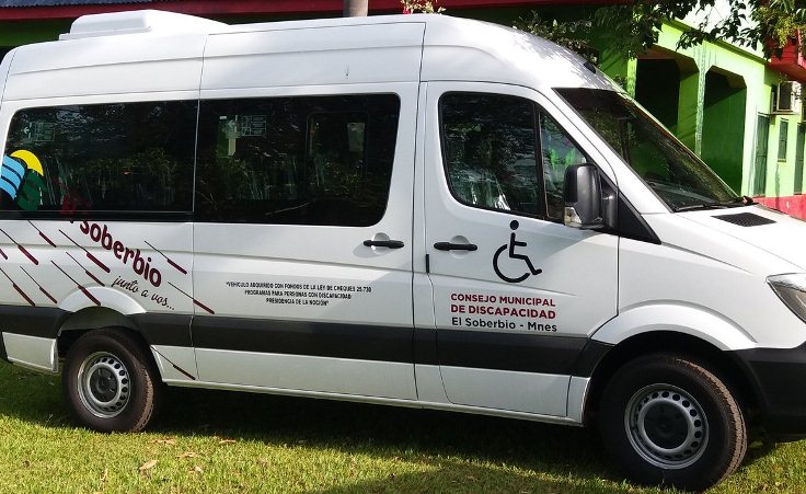 Esta combi pertenece a la Municipalidad, se encarga de trasladar a los estudiantes que tienen algún tipo de discapacidad. Guillermo, de catorce años, es uno de ellos, además de concurrir a la Escuela Especial 42, cuatro veces a la semana asiste a los talleres de integración de la Escuela de Frontera 671.