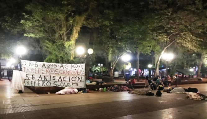 POSADAS. Tareferos de Campo Viera y Oberá acampan desde el domingo a la noche en la plaza 9 de Julio de la capital provincial frente a la Casa de Gobierno. Según publicó Misionescuatro, se tratan de unas 180 personas que este lunes entregaron petitorios reclamando el subsidio interzafra, fondo de desempleo, salario complementario y tarjetas alimentarias al gobierno de Hugo Passalacqua.