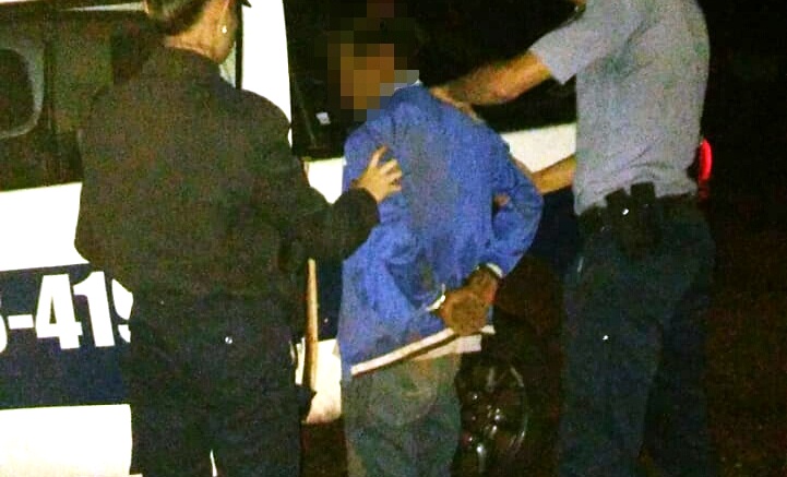 Éste al notar la presencia policial intentó darse a la fuga, pero fue rápidamente alcanzado y tras oponer tenaz resistencia y agredir a los uniformados quedó detenido, a disposición de la Justicia. En su poder además secuestraron un cuchillo de cocina.