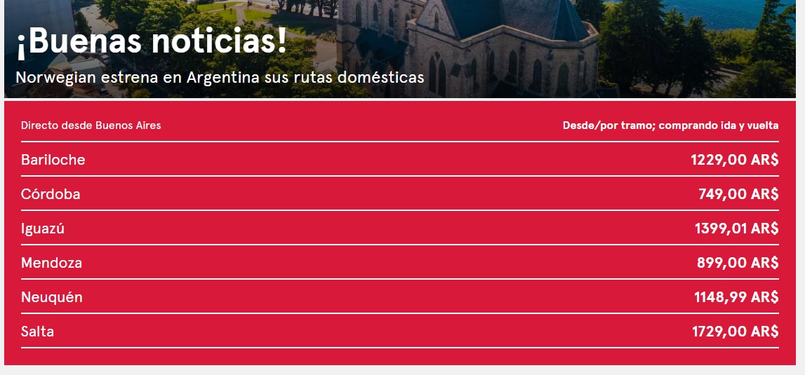 Low cost noruega comenzó a volar desde Misiones a Buenos Aires: $1399 ida y vuelta