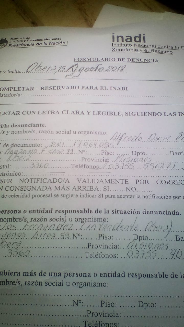 El INADI citó a la municipalidad de Oberá tras la denuncia de un empleado por discriminación