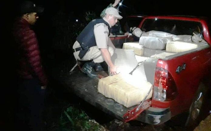 Ante la sospecha de un accionar narco, los efectivos arribaron al lugar y hallaron a una camioneta marca Toyota modelo Hilux, sin ocupantes. El rodado se encontraba con las puertas abiertas, sin los asientos traseros, mientras que a simple vista podía advertirse que en la caja tenía varios bultos con marihuana.
