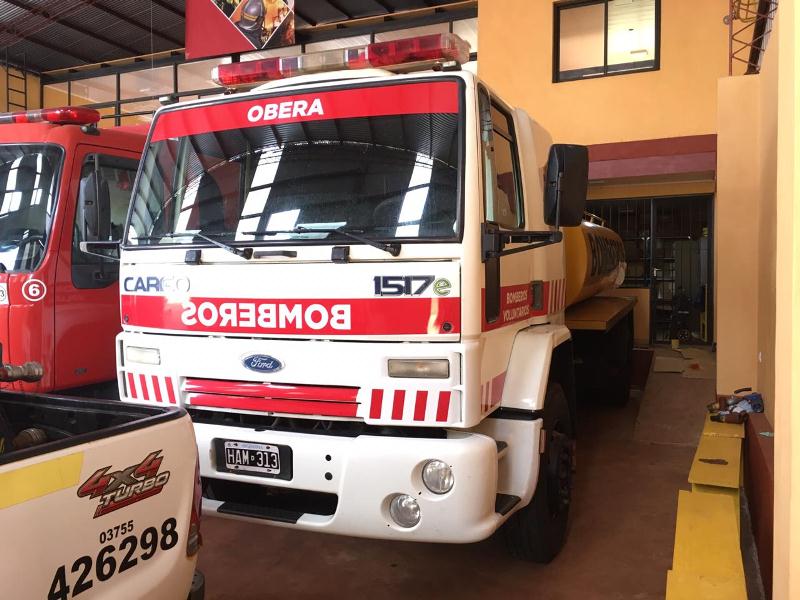 OBERA. El cuerpo de Bomberos Voluntarios incorporó un camión nuevo marca Ford Cargo 1517 equipado con una cisterna de 8 mil lts de agua que se suma al Ivecco tanque y sirven para alimentar las autobombas en incendios forestales o sectores que carecen de boca de incendio. La inversión con el tanque costó 900 mil pesos indicó Mario Bárbaro, responsable de las finanzas de la institución. El camión fue retirada del taller el sábado tras el ajuste del tanque.