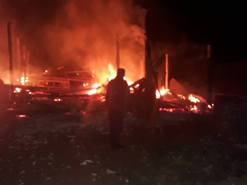 El fuego consumió totalmente el galpón y todo lo que había en su interior: una camioneta Ford 100; tres heladeras, dos garrafas, motoguadañas, herramientas varias y raídos de yerba.