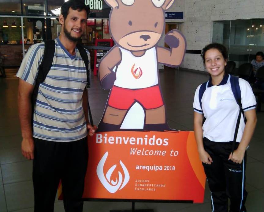 La atleta, está acompañada de su entrenador, Argentino “Tino” Demetrio, profesor de la escuela municipal de deportes.