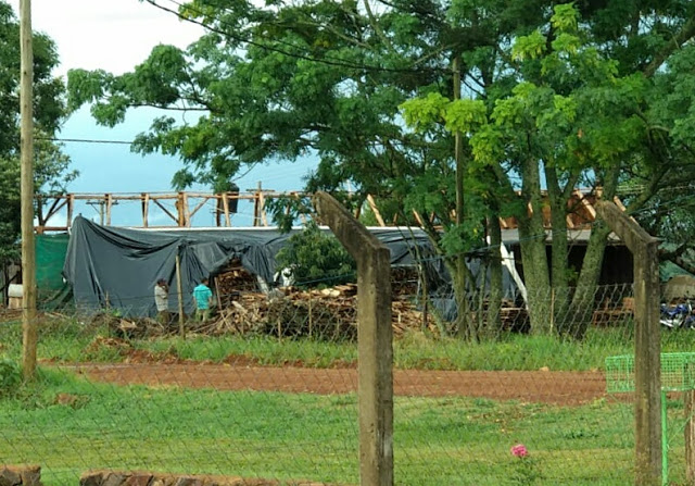 DOS DE MAYO. Los fuertes vientos dejaron a viviendas, industria y una escuela sin techo. El barrio más afectado de Dos de Mayo sería Tealera donde una vivienda quedó solo con el cielorrazo (ver video) y una carpintería quedó al descubierto. Unos metros más al Este el BOP 110 perdió parte del techo y cabreada. Hasta el momento no se registraron heridos ni se determinó el número de afectados.