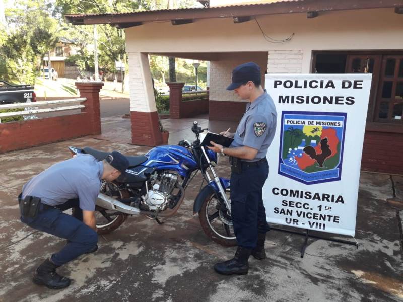 SAN VICENTE. En las últimas horas, efectivos de la Comisaría 1ra UR VIII recuperaron una motocicleta que fue robada de una casa ubicada sobre Ruta Nacional 14 km 979.