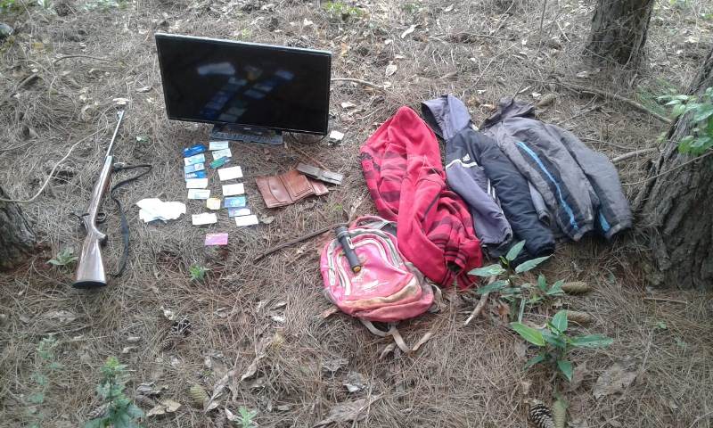 En el lugar se realizó un rastrillajes y se halló oculto entre la vegetación: 1 rifle calibre 22 mm., 1 TV PHILIPS de 32 pulgadas, 2 billeteras de cuero conteniendo varias documentaciones y una mochila conteniendo 3 camperas, 1 pata de cabra y 1 linterna, elementos que fueron secuestrados y reconocidos por la damnificada.