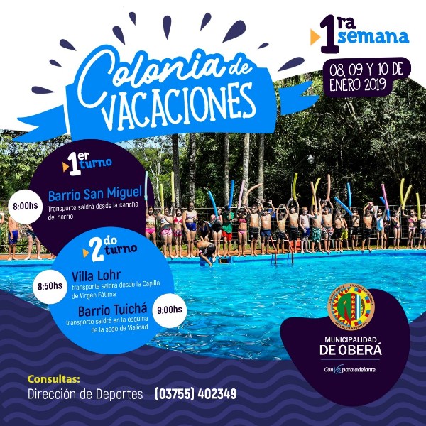 OBERA. A partir del próximo martes 8, se dará inicio a una nueva temporada de Colonia de vacaciones municipal. De la misma participan niños de entre 6 y 12 años de todos los barrios de Oberá.
