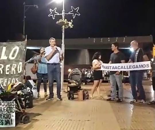 Cerca de las 21 horas, la protesta circuló por las calles entorno al centro cívico. Se sumaron integrantes del Polo Obrero y un diputado provincial de Cambiemos, Roberto Rocholl.