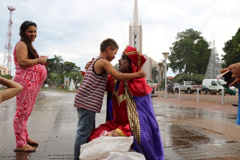 OBERA. Melchor, Gaspar y Baltazar, repartieron golosinas y algunos juguetes a cientos de niños de distintos barrios de la ciudad, terminando el recorrido en el Centro Cívico.