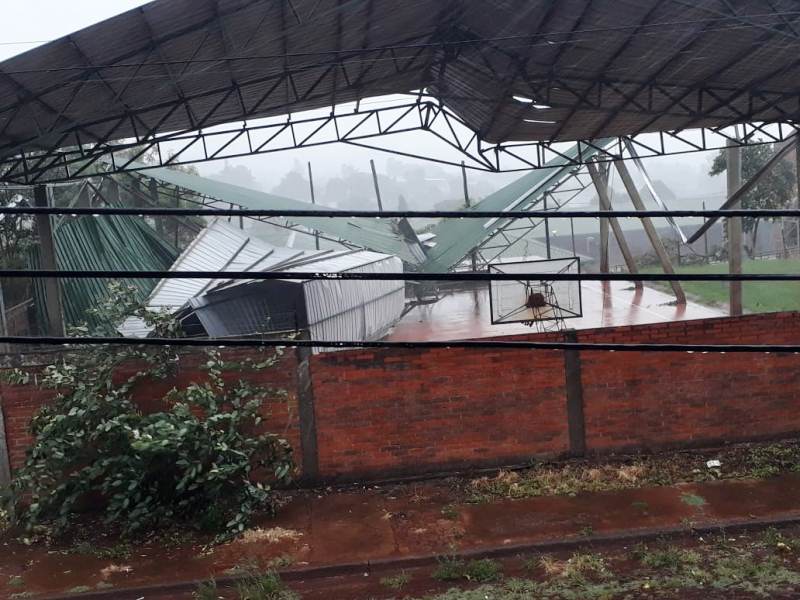 Equipos técnicos de la USCEPP realizaron un relevamiento de todas las escuelas que sufrieron algún tipo de daños tras el fenómeno metereológico que tuvo lugar en las últimos horas. Uno de los lugares más dañados fue el tinglado de la EPET 3 de Oberá que no soportó la fuerza con que se abatía el viento y la lluvia. A consecuencia de ello se desprendió el techo y los hierros de las cabriadas se doblaron.