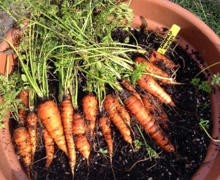 Las zanahorias tampoco toman mucho espacio, pueden ser cultivadas en climas fríos. Solo hay que asegurarse de suplirlas con mucha agua ya que las raíces pueden secarse y romperse.