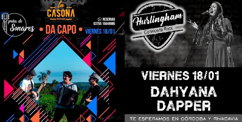 Por otro lado, en La Casona Resto Bar ubicada en Rauch y Rosas frente a la facultad de artes, otra noche con peña de Sonares, estará el grupo obereño Da Capo y el domingo 20 Noche Gospel con la banda BarJona.