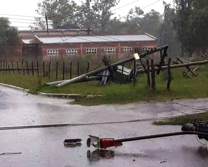 El jefe comunal expresó que “hace un rato dejó de llover, desde las 11 de la mañana hasta las 17 más o menos, hizo un destrozo sobre todo en el tendido eléctrico, estamos sin luz, fue una cola de tornado”.