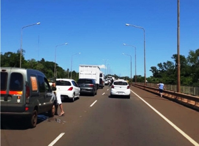 GARUPA. Largas colas se formaron sobre el puente de ruta 12 a la altura del arroyo Garupá. Vecinos cortaron el tránsito por la falta de agua. Unas quince personas de la localidad interrumpieron el tránsito causando inconvenientes a las personas que llegan del interior a la capital provincial.