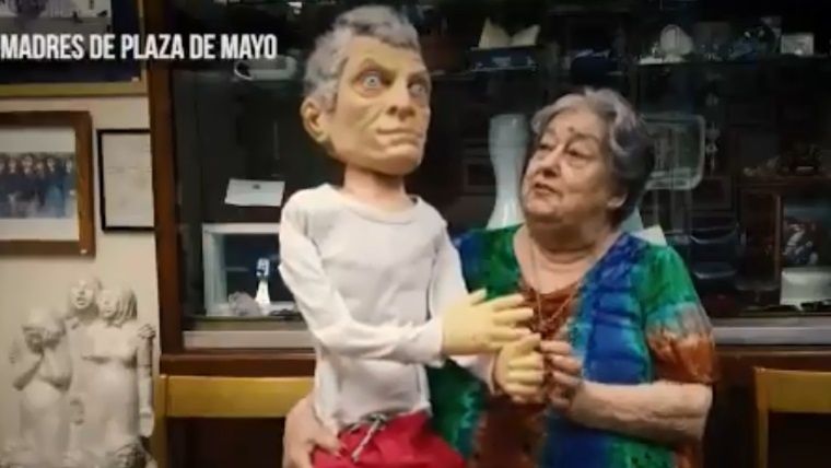 La titular de Madres de Plaza de Mayo, Hebe de Bonafini, apareció con un muñeco de Mauricio Macri, al que bautizó “MirkoRupto“.
