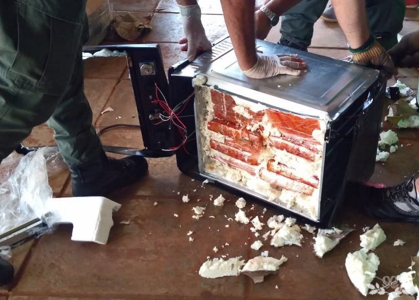 El siguiente procedimiento realizado por la Sección Vial “Eldorado”, donde los uniformados mediante orden judicial emitida por el Juzgado Federal “Eldorado”, realizaron la apertura de una encomienda la cual no poseía identificación alguna, en su interior hallaron un horno eléctrico, en el que se ocultaban 30 paquetes de “cannabis sativa” con un peso total de 24 kilos 460 gramos.