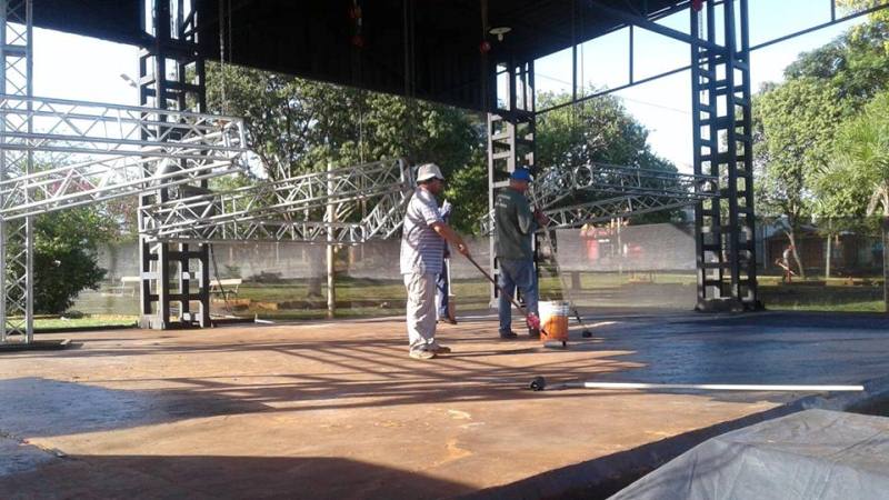 CAMPO RAMON. Trabajadores municipales están ultimando detalles de pintura en el Escenario, construcción de Pasarela, ornamentación, jardinería e iluminación en el predio de la Fiesta Provincial de la Ecología, para la presente Edición.