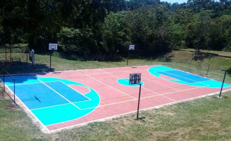 Los trabajos consisten en la aplicación de pinturas y demarcación de la cancha (vóley, básquet, fútbol), arreglos de aros, arcos y tableros.