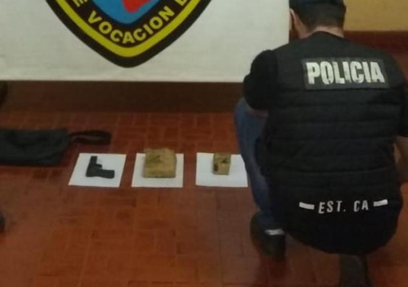 En el lugar registraron el objeto y en su interior encontraron una pistola y 2 bultos envueltos con cinta de embalaje, presumiendo que se trataría de alguna sustancia ilícita, los cuales fueron sometidos a test orientativo arrojando resultado positivo para cannabis sativa con un aforo total aproximado de $29.400 pesos.