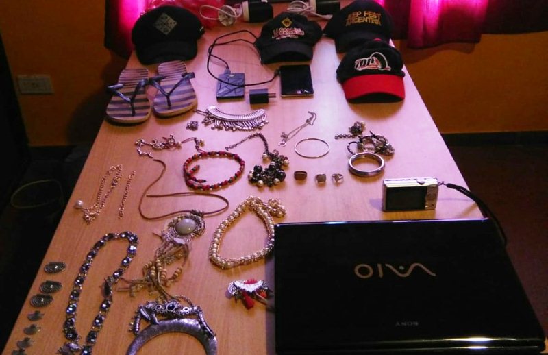 Posteriormente entregó voluntariamente: 1 notebook, 1 Cámara digital, 1 bolsa de polietileno conteniendo joyas y alhajas, 1 teléfono celular, 2 cámaras de vigilancia, 1 machete, 1 cargador portátil, 4 gorras y 1 par de ojotas, elementos que fueron incautados bajo acta pertinente.
