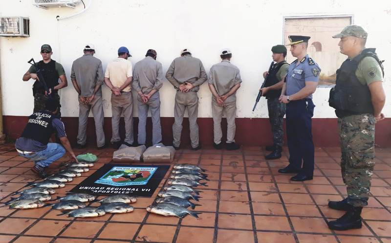 Los efectivos se encontraban realizando control vehicular, cuando procedieron a identificar a los ocupantes de un camión que se dirigían hacia San José. Los 6 empleados de una conocida empresa yerbatera, tenían entre sus pertenencias un total 45 kgs de pescado, suponiendo que fueron sustraídos del sector de recría que cuenta la compañía, ya que carecían de las documentaciones de transporte de mercadería refrigerada, se procedió a su incautación.