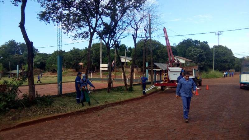 Además de la instalación de luminarias led, el personal de Obras Públicas trabaja intensamente en el mantenimiento de todos los espacios públicos de la ciudad.