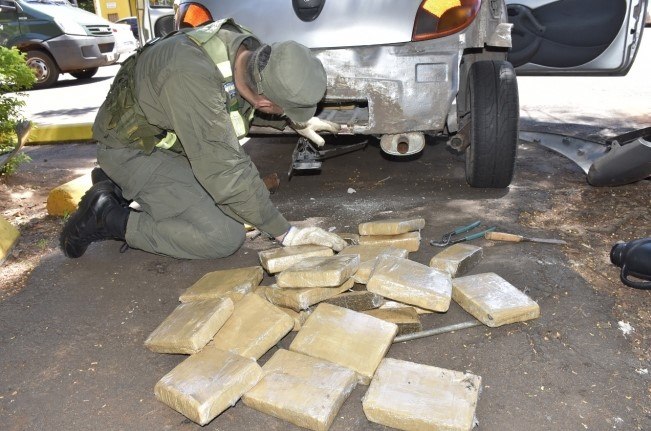 Al realizar la inspección correspondiente, los uniformados detectaron anomalías en el piso del baúl del rodado, observando que el mismo sobresalía más de lo habitual. Ante esta situación, trasladaron el vehículo hasta la Aduana, donde mediante la utilización de escáner se pudo constatar que allí se ocultaban paquetes rectangulares.