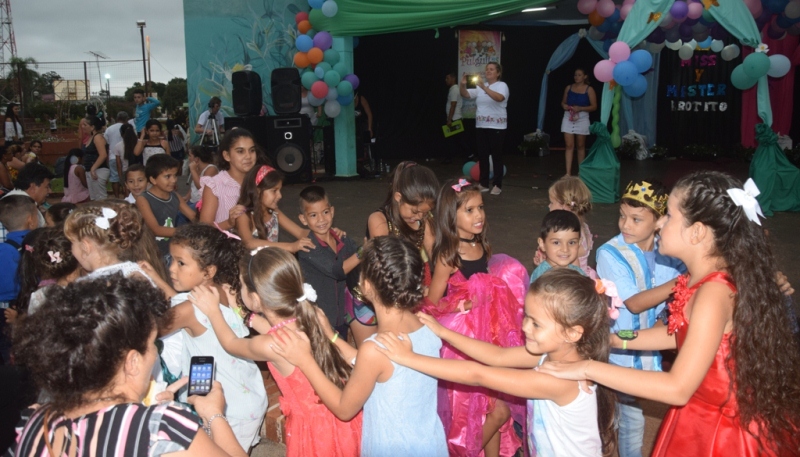 Las palabras de bienvenida estuvo a cargo del presidente de la comisión organizadora, quien agradeció a las familias y los presentes en el evento. Luego de la apertura ingresaron al escenario con su show, “las pulguitas” que divirtieron a los más pequeños que se dieron cita junto a sus familiares y amigos hasta el anfiteatro local para disfrutar de la jornada donde se presentaban los 45 niños para la elección.