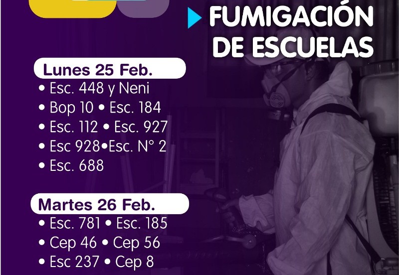 OBERÁ. Hoy comenzarán con el cronograma de fumigación en los establecimientos educativos de la ciudad de Oberá, dejando en condiciones óptimas para el inicio del ciclo lectivo.