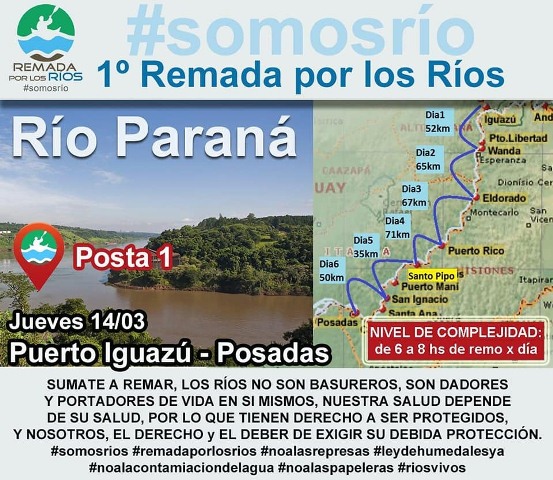 En diálogo con Radio Cataratas, uno de los organizadores y autoconvocados de esta cruzada, Thierry Seró,explicó que “la idea de la travesía ‘Remada por los Ríos Paraná y Uruguay’ es transmitir un mensaje a la sociedad y a los gobernantes sobre la actualidad de los ríos, la cual es de total alarma, no sólo en los ríos Paraná y Uruguay o de la región, sino de gran parte del mundo en general”.