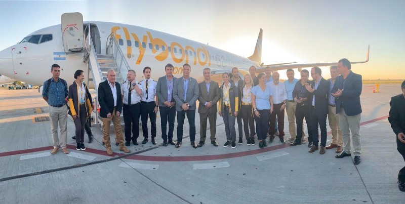 IGUAZÚ. Flybondi realizó hoy su vuelo inaugural que conecta a la ciudad de Rosario, Santa Fe con Puerto Iguazú y que tendrá dos frecuencias semanales los días miércoles y sábados. Es la primera aerolínea ultra low cost que comienza a conectar a la provincia de Santa Fe con otras provincias del país. Al mismo tiempo, con el nuevo vuelo, Misiones ya recibe un promedio de entre 24 y 25 vuelos diarios, con 19 en la ciudad de las Cataratas y el resto en Posadas. A ese número se sumará en junio el vuelo internacional que unirá a Madrid con Iguazú.