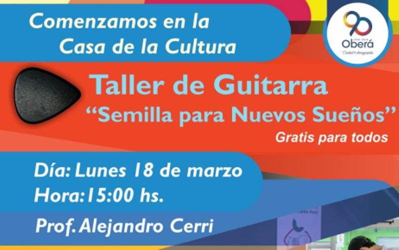 OBERÁ. Hoy lunes 18 comienzan las clases de guitarra municipal, dictada por el profesor Alejandro Cerri.