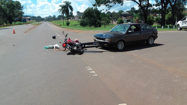SAN VICENTE. Cerca de las 11:30 una Honda Titan impacta un Volkswagen Gol en el actual kilómetro 976 de la Ruta Nacional 14 en San Vicente. Al parecer Maico Ivan M. (22), oriundo de la provincia de Santa Fe, una por calle Colectora y al tomar Jorge Maniac con intenciones de ir a la estación de servicio se atraviesa frente a la motocicleta que venía en dirección San Vicente – San Pedro. Ésta era conducida por Orlando E. (36) y acompañado por Cristina B. (32) quienes a raíz del impacto sufrieron heridas de distinta consideración.