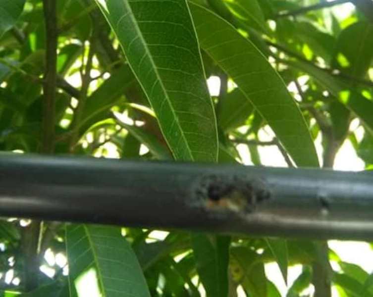 El cable estaba cortado a la altura del kilómetro 27 de la ruta provincial 4 en jurisdicción de Dos Arroyos, en el tramo que atravesaba una planta de mango.