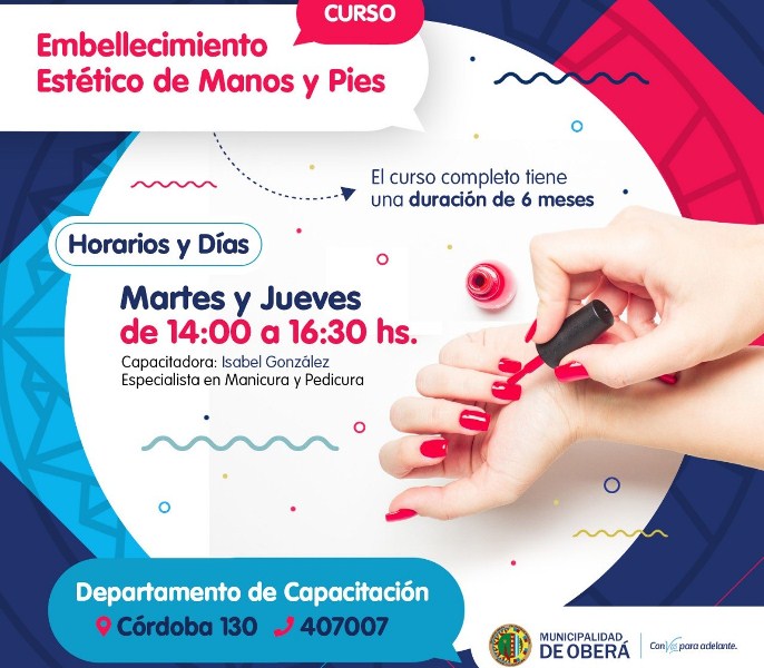 OBERA. El Departamento de Capacitación realizará un curso sobre embellecimiento de manos y pies. El mismo comenzará el próximo 9 de abril y es necesario inscribirse previamente.