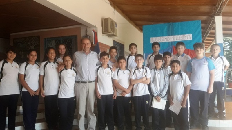 MISIONES. Durante la mañana del viernes, el Senador Nacional por Misiones, Humberto Schiavoni estuvo presente en diferentes establecimientos educativos de la localidad de Jardín América, donde directivos y alumnos recibieron por parte del funcionario, banderas de ceremonia e izamiento tanto de Argentina, como también de Misiones.