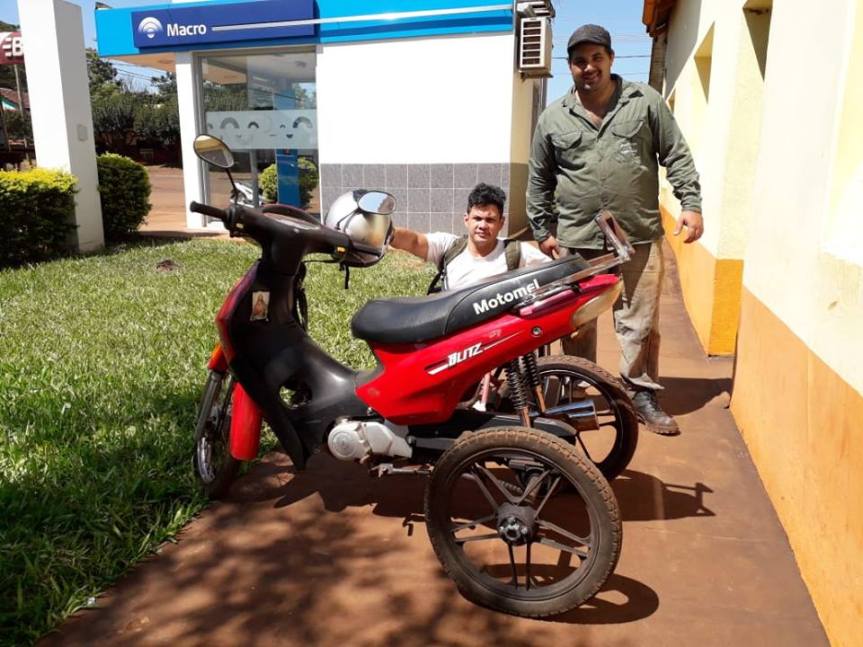 Raúl Bárbaro mecánico, metalúrgico, empleado Municipal y aficionado a las adaptaciones y fabricaciones caseras, se encargó de diseñar un sistema para transformar la moto de Marcos a Triciclo.