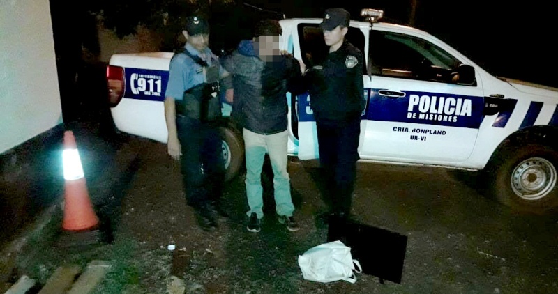 Los mismos se movían en la noche, aprovechando la tranquilidad de Bonpland, pero no contaban que estaban siendo vigilados por efectivos policiales; primeramente intentaron sustraer una moto 110 cc., a la voz de alto se fugaron e ingresaron a un pinar, cercano a un deposito abandonado, donde arrojaron la TV y una bolsa que contenía el DVD y los rollos de cables, uno de los autores del ilícito fue reducido y aprendido, siendo identificado como HUGO RAFAEL G. (42), mientras su cómplice; quien ya está identificado; se dio a la fuga internándose en el monte, siendo buscado por la Comisaria local.