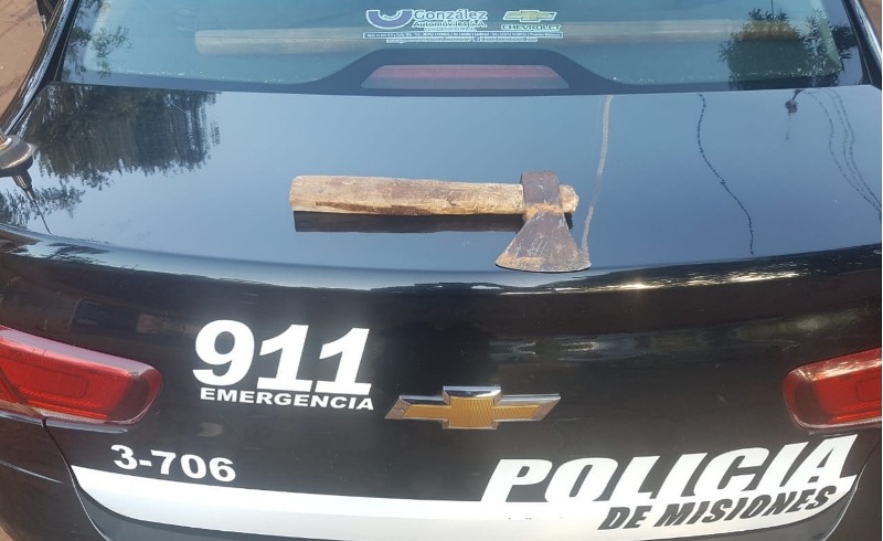 El joven con un hacha en mano intentó agredir a su padre y a un vecino, por lo que fue aprehendido y trasladado a la comisaría jurisdiccional.