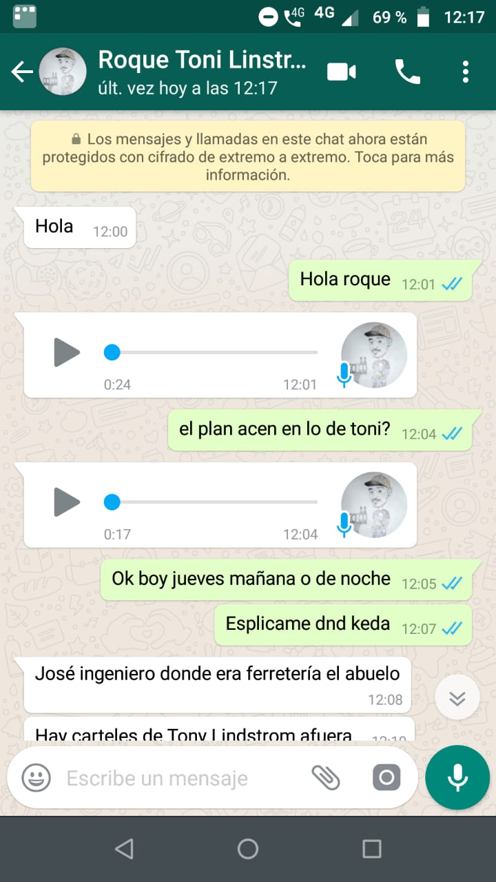 OBERA. En los últimos días circularon audios y capturas de pantalla en las que Roque (Sand), un ex militante de Héctor «Cacho» Bárbaro, quien ahora trabaja en el espacio del candidato renovador Antonio «Tony» Lindström, habla de la gestión de planes sociales en el local partidario ubicado en avenida José Ingenieros. Por Whatsapp, éste le afirma que «los planes se hacen en el local de Tony».