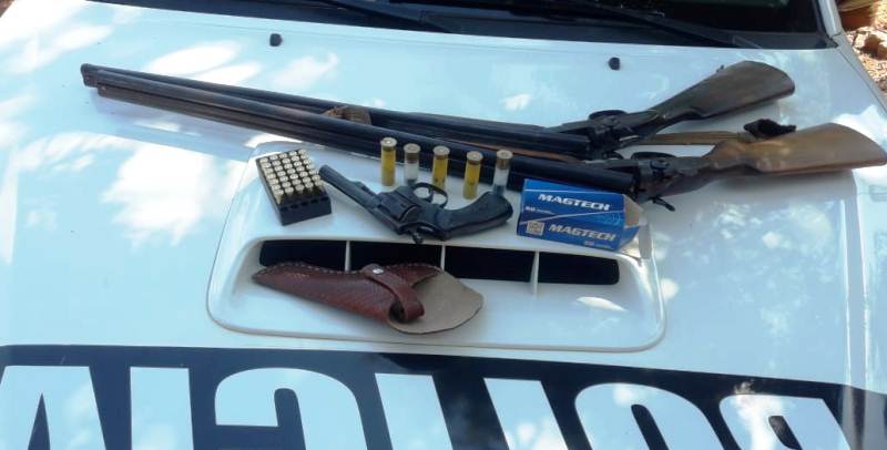 ALEM. Los investigadores lograron establecer que dos lugareños podrían guardar relación con el hecho; con informes pormenorizados elevados a la justicia, en la fecha desde las primeras horas del día se desplegó una gran cantidad de efectivos de diversas Comisarías y Divisiones especiales de la UR VI; en la primera vivienda allanada se detuvo a MATIAS E. de (20) residente de Picada Itatí, del domicilio del mismo se secuestraron (01) rifle Cal. 22 SÚPER BATAN con un cargador y (05) cartuchos; en el segundo allanamiento que se realizó en forma paralela en la misma zona de Colonia, los uniformados secuestraron (01) Escopeta Cal. 28, doble caño, marca AMADEO ROSSI, también (01) escopeta calibre 20, doble caño, marca AMADEO ROSSI , así también (05) cartuchos y un Revólver calibre 32, con 35 cartuchos.