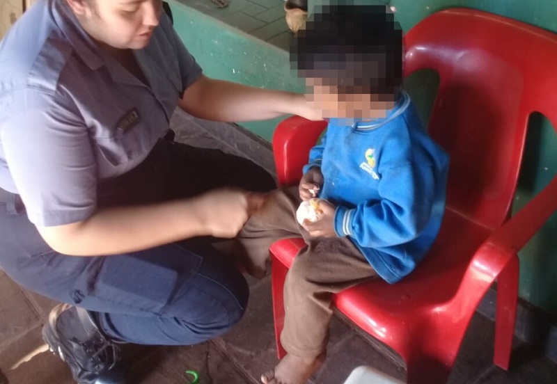 El chiquito de 02 años fue encontrado el domingo por la tarde por personal de la Comisaría de la Mujer frente al hogar «Santa Macrina» de Alem; estaba descalzo y llorando.